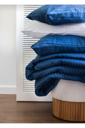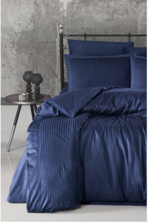 مجموعة غطاء الساتين الزرقاء من طراز MNZ-Navy، نوع فندق ومنزل مزدوج، 2 غطاءات وسادة ورقائق، غطاء غطاء الس