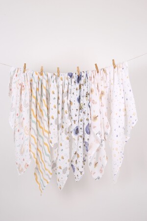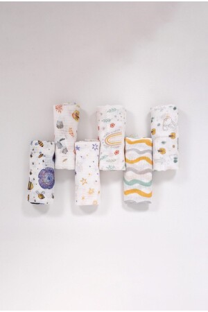 MNZ- هذا المنتج يتضمن 6 قطع من البطانيات 75x75 سم. مصنوعة من القطن 100%. يمكن استخدامها في 4 مواسم. لديها نسيج ناعم ومتنفس