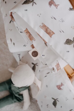 مصنوع من منتجنا من نسيج البطاطون 100% ومطبوع مع ألوان منظمة معتمدة. محتوى المجموعة هو غطاء غطاء 60x100 سم ، و 25x45