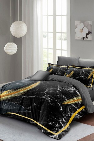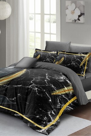 مجموعة غطاء مادة من القطن المنسوجة بشكل وثيق الصاتين 3D تصميم خاص الرخام الداكن (بدون ورق) PERLASERA26547