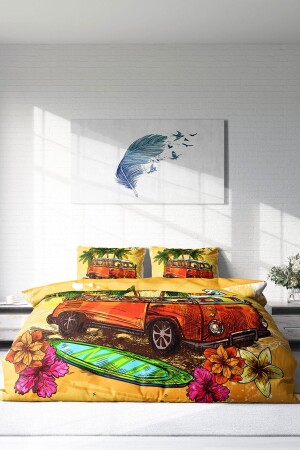 مجموعة غطاء مادة من القطن المنسوجة بشكل وثيق (MNZ-Double Duvet Cover Set) القطن الصاتين 3D تصميم خاص القافلة (بدون أوراق