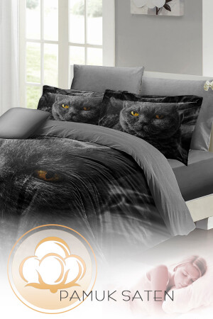 مجموعة غطاء من القطن المنسوجة بشكل وثيق الصاتين 3D تصميم خاص قطة طبيعية خطيرة (بدون أوراق) PERLASERA31152