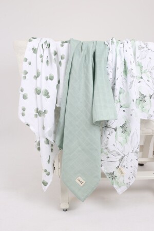 MNZ- يتكون هذا المنتج من 3 مجموعات غطاء المسلين، 2 طباعة و 1 لون صلب. يبلغ طولها 75x75 سم. مصنوع من 100٪ القطن. يمكن