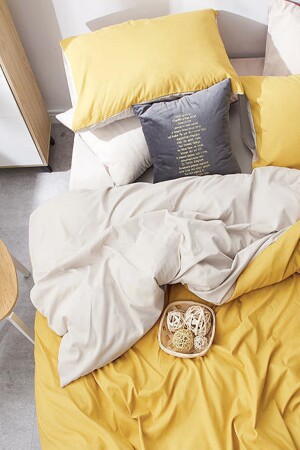 مجموعة غطاء MNZ-Duvet مع ورق مقبضة مزدوجة صفراء بيج iqon063