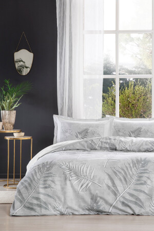 مجموعة غطاء MNZ-Duvet Set مزدوجة مع أوراق مرنة مرنة Frunze Gray ST. 2914