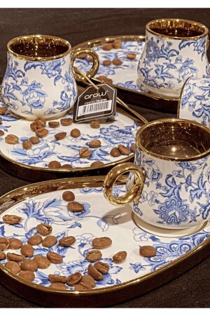 مجموعة من كوبات القهوة MNZ-Arow مع حامل الكوكيز، 6 كوبات القهوة + 6 صحونات