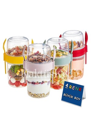 مجموعة كبيرة من 4 حاويات لليغورت الفاكهة - مخزن الطعام و حاوية الموزلي 7480000716957