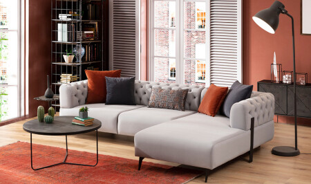 نموذج الأريكة الزاوية ذات الساقين المعدنية