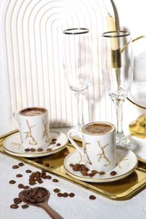 Sunum Tabaklı- Kahve Yanı Bardaklı 18 Parça 6 Kişilik Kahve Fincan Takımı- Seti