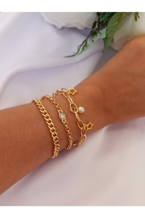مجموعة سوار سلسلة حلقة مزودة بالذهب من MNZ تتضمن سلسلة امتداد 15 سم + 5 . تتكون من 3 سوار منفصلة. لديها غطاء خاص ضد التظلم - يوصى