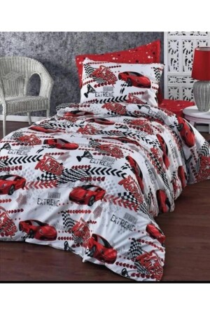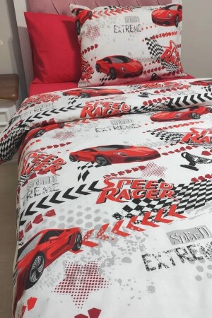 Rally Yarış Arabalı Desenli Mavi Çarşaflı 2 Yastık Kılıflı -Ranforce Tek Kişilik Nevresim Takımı