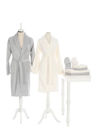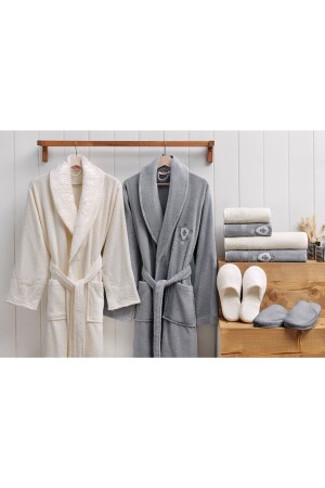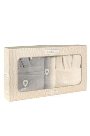 مجموعة ملابس الحمام العائلية من عائلة (MNZ-Wedding) - كريم رمادي