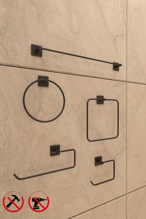 مجموعة ملحقات الحمام من نوع MNZ-Adhesive Towel Set T. Paper Holder و Napkin Holder Square Set Black Set من 5