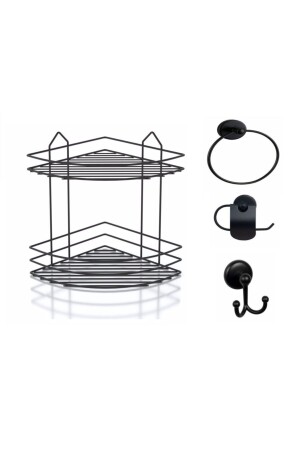 مجموعة ملحقات الحمام من 3 قطع سوداء ، فترة الحياة لا تتصدأ الزاوية رف دشة رف شامبو حاملة سوداء Ek-02 PRA-4783186-3654