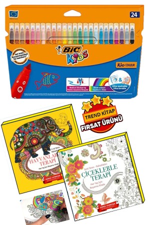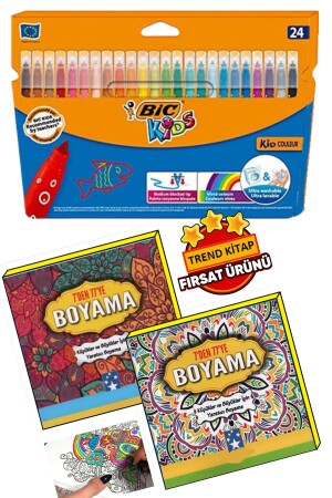 مجموعة ملونات MNZ-Mandala للبالغين - 2 كتب و 24 قلم فلت-تيب ، 2 كتب ملونة. غطاء الخبز / تغطية: هذه النما