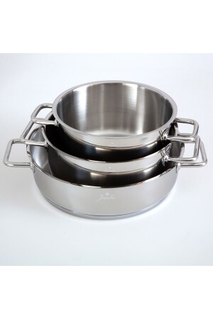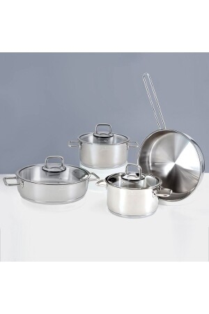 تمت إكمال المطبخات من خلال مجموعة أطباق الطهي الصلبية من جامبو باليرمو ذات 7 قطع. بفضل مادة الفولاذ المقاوم للصدأ والتصميم الع