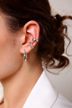 3 Çift Büyük Boy Halka Gümüş Renk Küpe