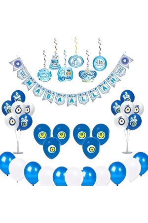 أزياء السقف من الطقس 6 قطع: 1 كيلو مشالله نص 190 سم: 1 قطعة 2 بالون يقف 10 لون زرقاء عيون الشرير 10 بالونات بيضاء ذات عيون