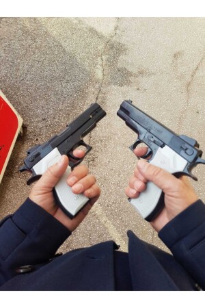 Metalik Parlak Gri Boncuk Tabanca Estetik Görünüş Kaliteli Plastik Oyuncak Silah Boncuk