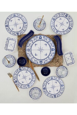 Çiğdem Blue Model 12 Kişilik 21 Parça Kahvaltı Takımı Kahvaltı Seti[ Mavi 12]
