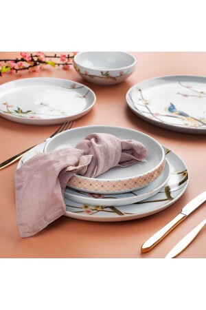 مجموعة من الأطباق العشوائية من طراز MNZ-Schafer 24 قطعة - مادة وردي: محتوى المنتج من البورتسلين 6 قطع من 27 سم لوحة الخدمة