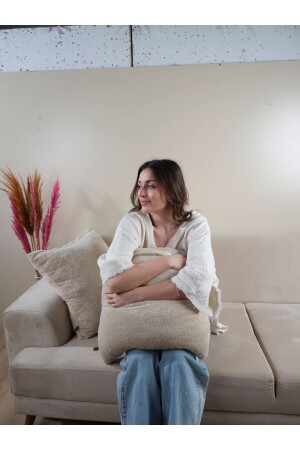 MNZ-Beige Country Frilly مستطيل رمي غطاء وسادة النسخة الناعمة العمر السكندنافي - بوهيمية - عيد الميلاد