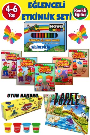 مجموعة من الأنشطة الممتعة من 4 إلى 6 سنوات (القلم + 5 كتب لون) + اللغز + خمیر اللعب)
