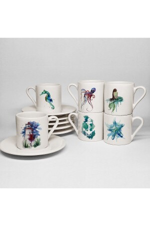 مجموعة من كوبات القهوة التركية من طراز MNZ-Porcelain للست أشخاص، تتكون من 6 كوبات مطبوعة و 6 صحونات بحجم 90 مل. يتم تصني