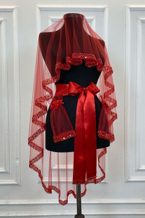 مجموعة من الحجاب العروسية من بورغوندي - كريستال زجاجي لامع - اللؤلؤ والسيكين حجاب الحنّة المزروعة 6 قطع