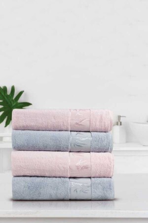 %100 Pamuk Nakışlı Baş Havlulu Bornoz 4'lü Set Çeyiz Seti Hamam Seti Banyo Seti