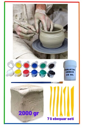 مجموعة من خمیر السيراميك لدينا (خمير اللعب) تتضمن - 2000 جرام من خمیر السيراميك (طين الطين) - 6 ألوان ألوانهات أكريليك - مجموعة