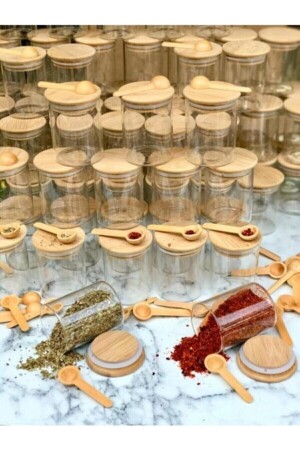 مجموعة من الزجاجات المغطاة بالبامبو مع 6 ملعقة خشبية mprn-231510134