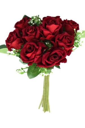 مجموعة من الزهور الاصطناعية من 9 وردة بالخيوط ذات الجودة 27 سم حمراء