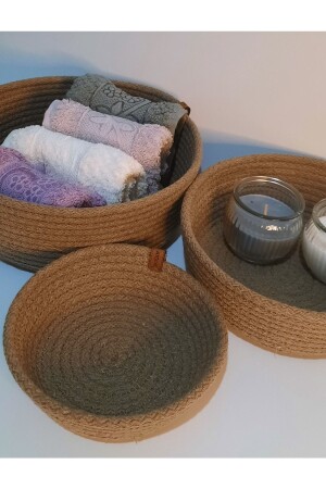 مجموعة من السلة المزروعة من قطعة 3 ، منظمة متعددة الأغراض 6 مم سميكة حبل ملون من اللون الجيوت TYC00628351996