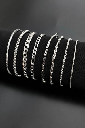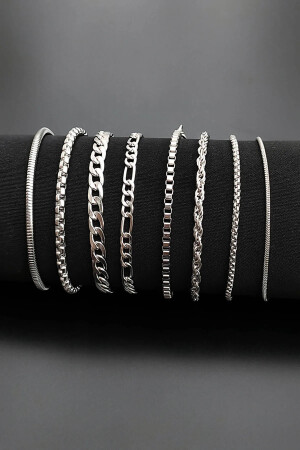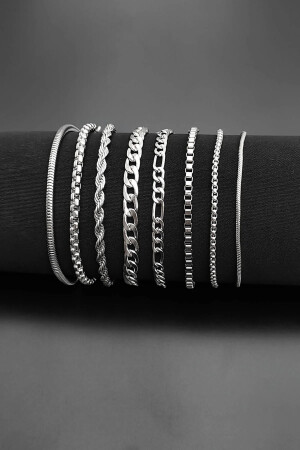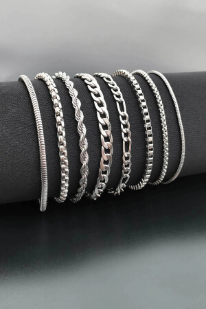 يتم إرسال سوار MNZ-8 (Rhodium-Knited-Gourmet-Figaro-Cube-Twist-Knited-Minimal) يمتد طول العص