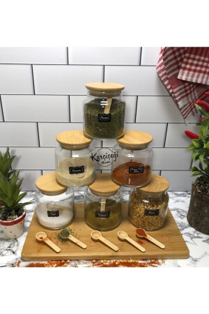 12'li Kapağı Kendinden Kaşıklı Ve Etiketli Baharatlık Seti 300 ml Gold Etiketli Cam Baharat Takımı