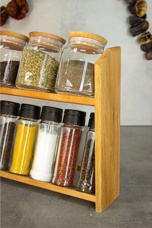 12'li Kapağı Kendinden Kaşıklı Ve Etiketli Baharatlık Seti 300 ml Gold Etiketli Cam Baharat Takımı