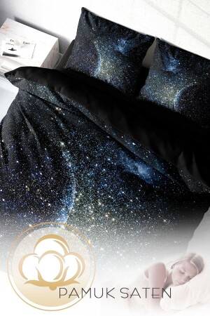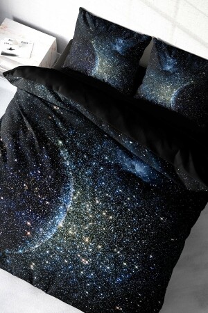 MNZ-MonoHome Star Moon 3D Cotton Satin Double Duvet Cover Set A Pleasant Touch A Peaceful Sleep 200 سم × 220 سم - خاصة نسي القطن الساتين - الطباعة الرقمية