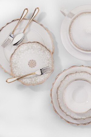 MNZ-Korkmaz A8238 مجموعة إليز 60 قطعة عشاء مجموعة 12 طبقات خدمة 12 طبقات عشاء 12 طبقات حلية 12 أكواب الحساء 1 قطعة 30 سم طبق قوار