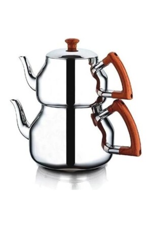 MNZ-Özkent K-318.03 MARMARİS MEGA TEAPOT WOODEN Top Teapot: 1,7 LT. Lower Teapot: 3.2 LT. 18/10 Cr-Ni 304 Quality S