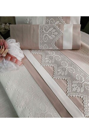 MNZ-BURSA DWOWER HAND HEAT LACE PUQUE SET HAVY MODEL DOUBLE ROW LACE PIQUE 220*240 ورقة السرير 200*220