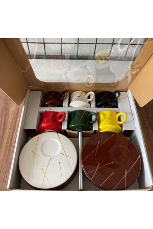 كوب قهوة من نوع "منز" مع طبق مستدير لـ 6 أشخاص سيضيف لون إلى عروض القهوة 6 كوبات 6 طبقات