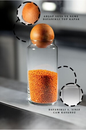 مجموعة من الـ MNZ-Glass Jar مع غطاء كرة خشبية، وعاء السكر، وعاء العشاء، وعاء العقاقير وعلبة تخزين 1. 4 لترات
