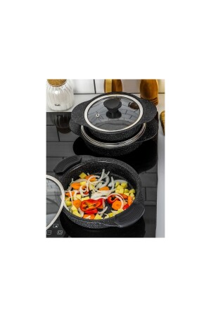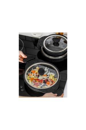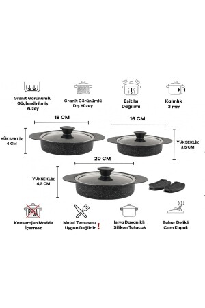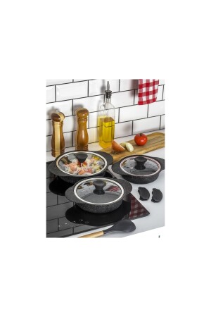 مجموعة من الـ MNZ-Granit Plus 3- Piece Pan Set مع معقب سليكون قابل للتشبك TAC-3521 الأسود