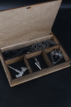 مجموعة من الـ MNZ-Necklace Set دخان اللون الخشب هدية خاصة نورديك سكين رمح و حبل الذئب و سلسلة DTDB535