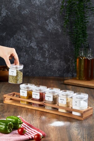 مجموعة من الـ "MNZ-Spice Jar" مع 6 جرار، وعاء الـ "Spice Jar" مع منصة خشبية 200 مل، 24 قطعة من علامات الـ "