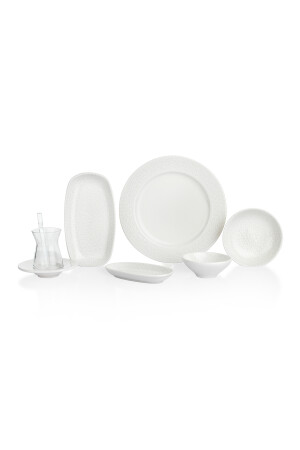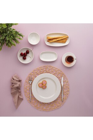 64 Parça 12 Kişilik Platin Modern Krem Kahvaltı Takımı
