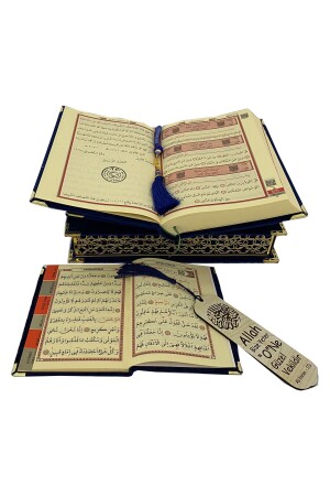 مجموعة من القرآن المنزلي مع ميكا خاصة مزخرفة مغطاة بالكامل بالخمط، صندوق هدية - Navy Blue