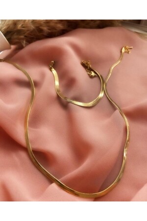 مجموعة من القلادة والصمامات من الصلب من النموذج الإيطالي المستطيل المغطى بالذهب للنساء من MNZ