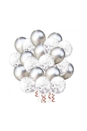 Gümüş Konfetili Şeffaf Ve Gümüş Metalik Balon Seti 20 Adet 30 Cm Içi Gözüken Gri Pullu Balon Pulu
